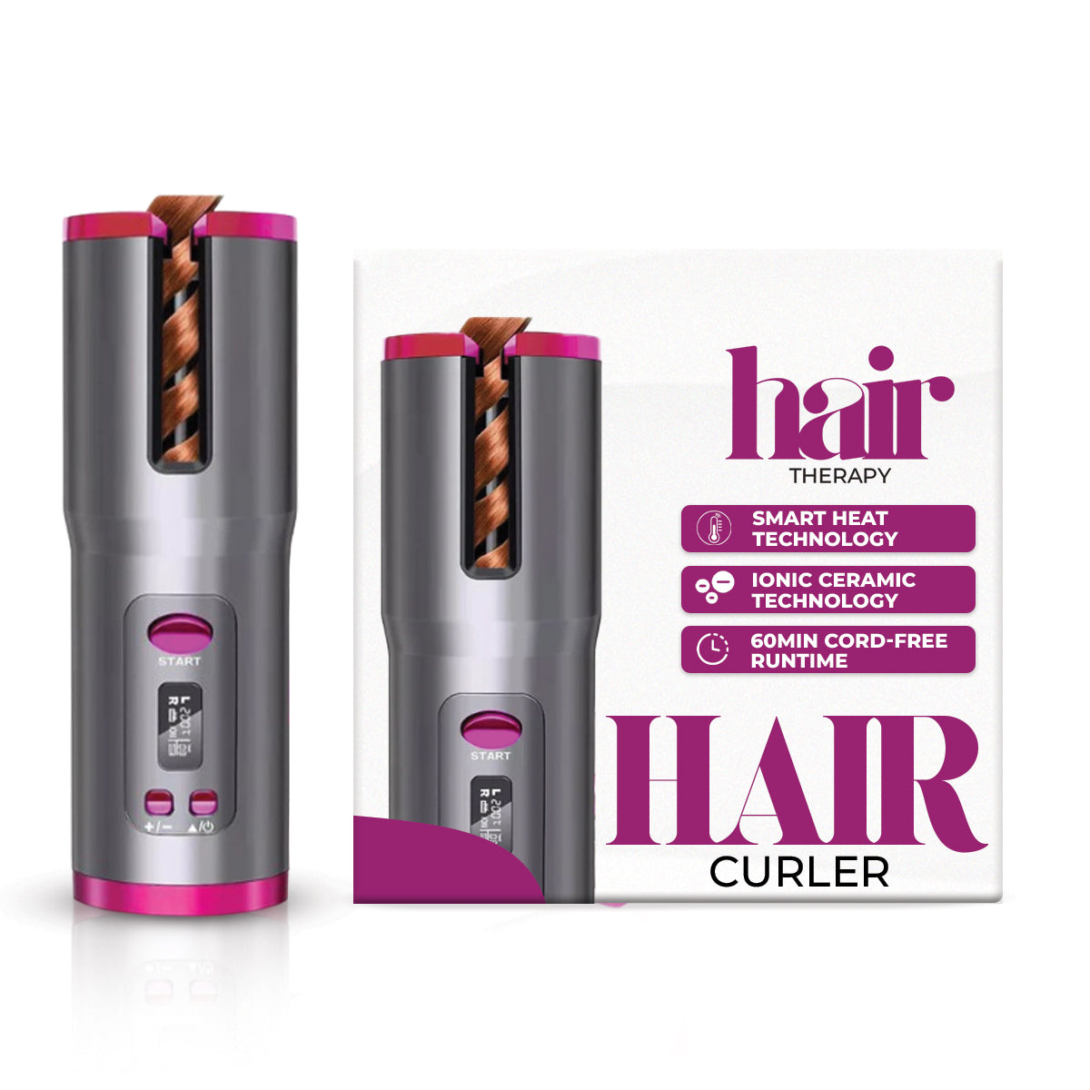 Unlock effortless, beautiful curls with the Hair Therapy Cordless Hair Curler. Designed for freedom and flexibility, it gives you salon-worthy results wherever you are. With custom settings and a sleek LCD screen, it’s your secret to confident, carefree styling—anytime, anywhere.